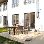 Plaza Sianozetyからわずか1.3km離れたところにある365Pam - Marina I Dom Rodzinny - Basen Zewnetrzny, Kort Tenisowy, Silownia, Plac Zabaw, Boisko ウストロニエ・モルスキエには、庭園の景色を望むテラスがあります。